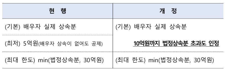 개정 안에서도 10억 이내에서 배우자가 공제 받지 못한 금액은 자녀가 모두 공제받을 수 있도록 해줌