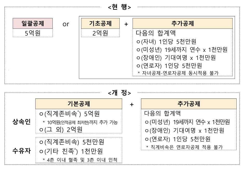 (2024년 인적공제 상향을 추진할 때에도 1인당 5천만원→5억으로 상향하고자 했으나,