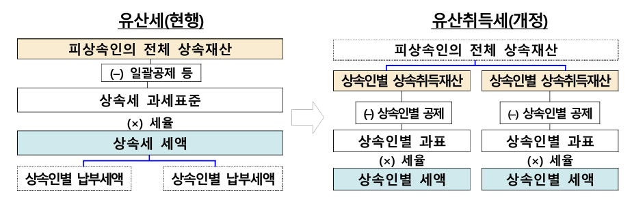 '유산취득세'는 상속인이 취득한 유산에 대해서만 누진세율 적용 (개정 안)